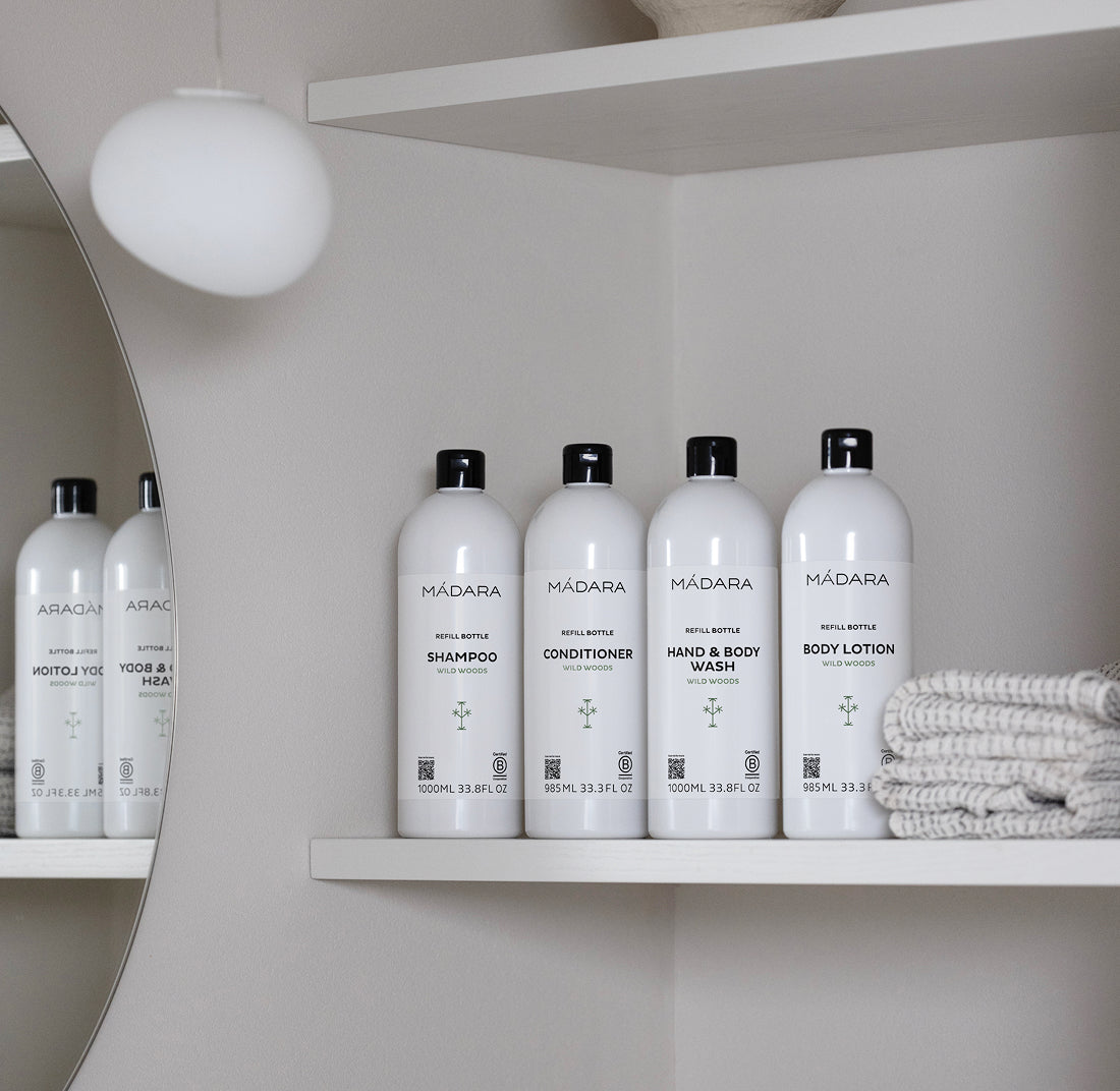 Premium-grade beauty essentials for hotels, Airbnbs, cafés and restaurants, created by MÁDARA — a multi-award-winning organic skincare and haircare brand.